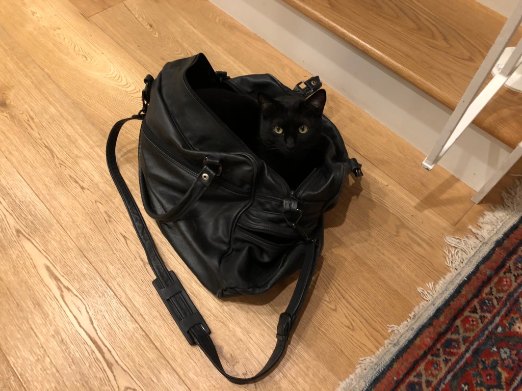 Time for another quick photo breather in this stream-of-consciousness post – a cat in a bag!